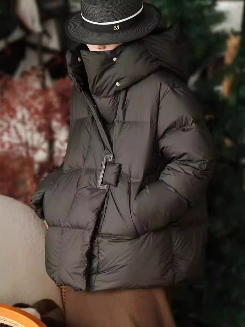 Short Hooded Double Zipper 90 White Duck Down Lightweight Down Warm Jacket