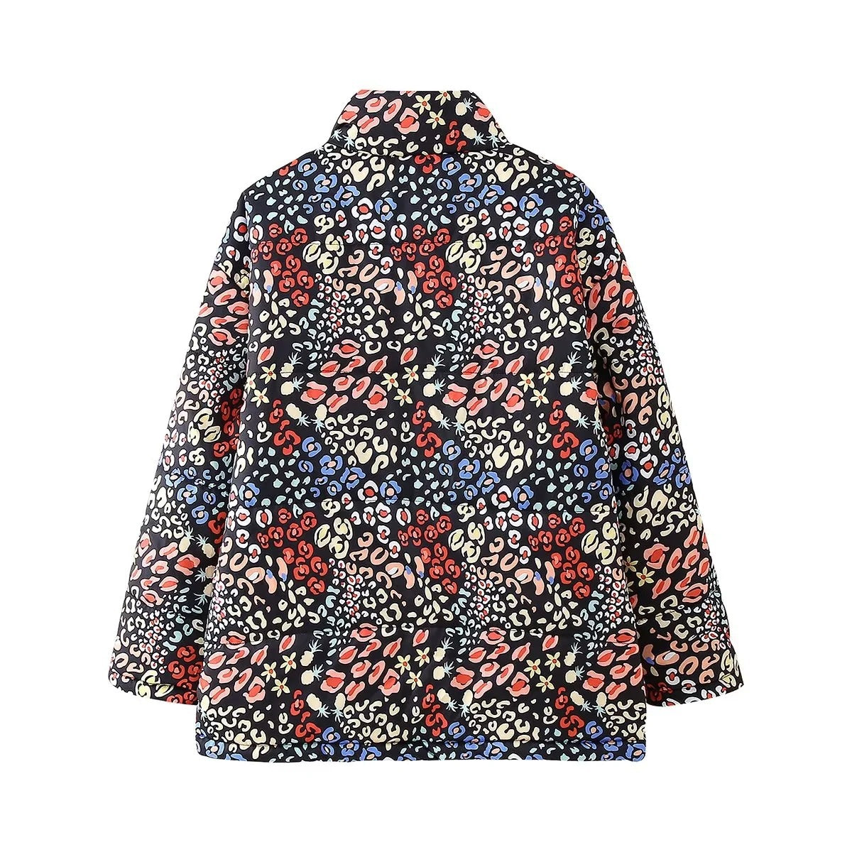 Be the first to review “Stand Collar Printing Loose Zip Cotton Coat Jacket”
