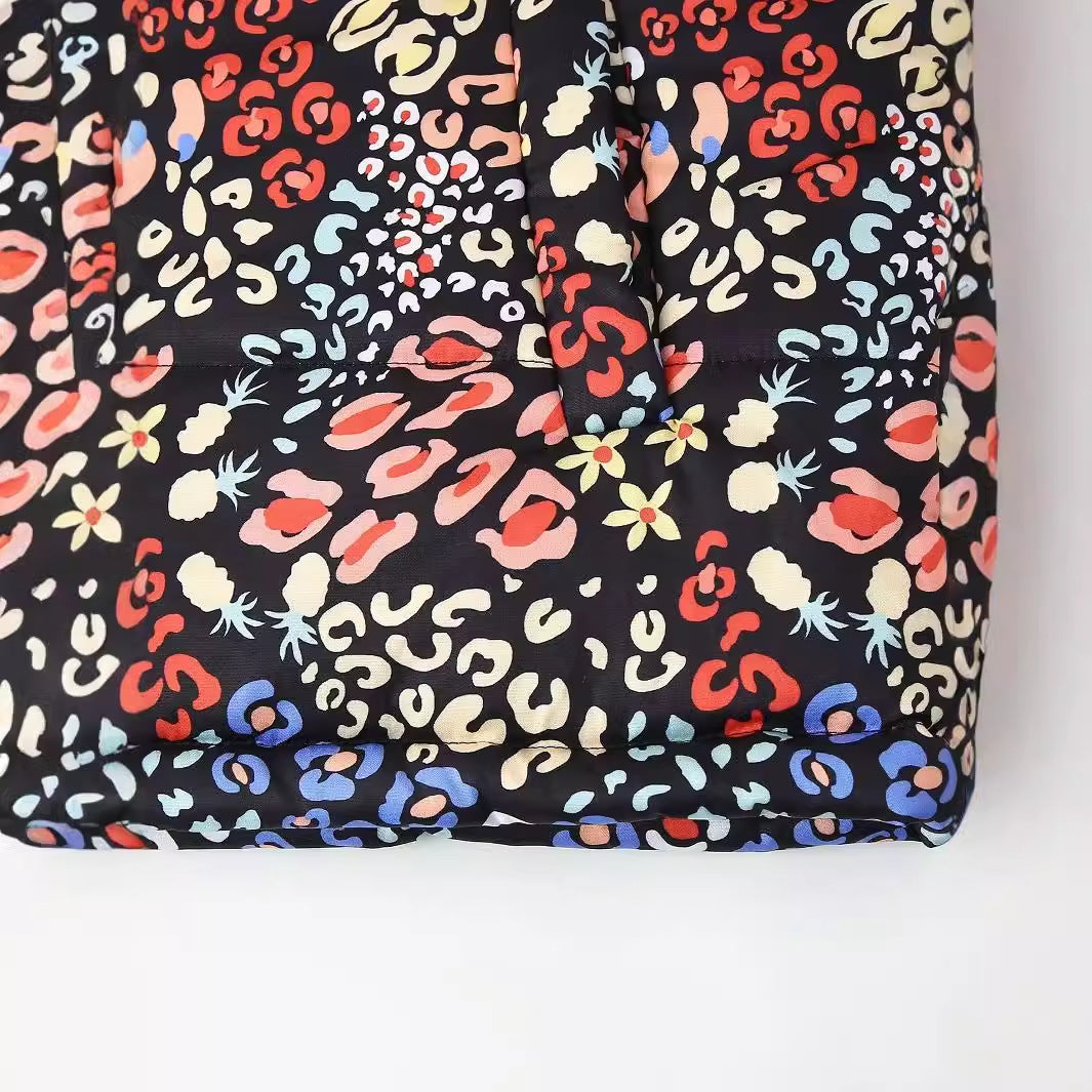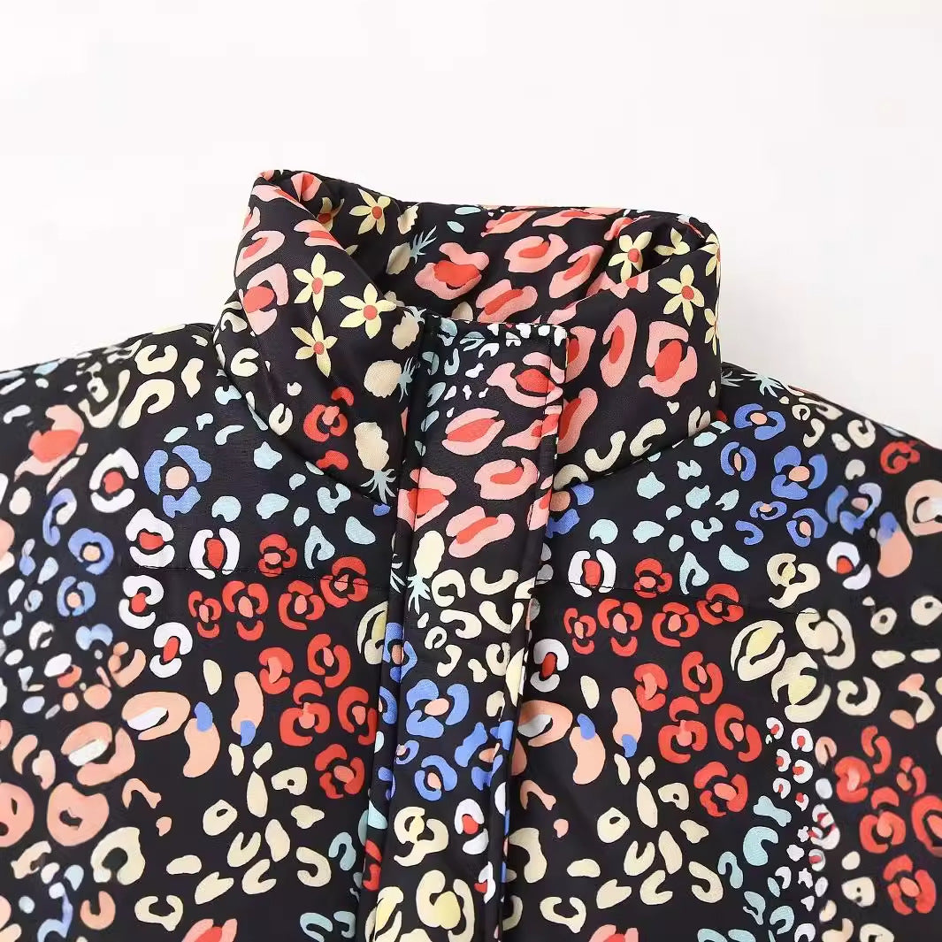 Stand Collar Printing Loose Zip Cotton Coat Jacket